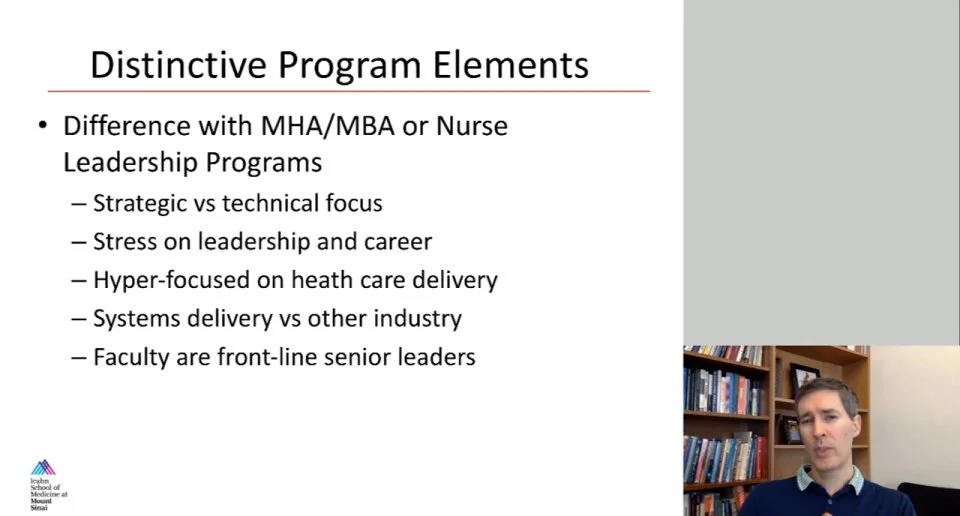 Watch the videos below to learn about the MS Health Care Leadership Program format; curriculum; faculty; admission requirements; degree benefits and more.